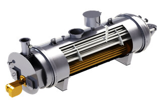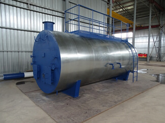 Промежуточным теплоносителем – теплообменный процесс образуется за счет кипения водяной рубашки и выработанного водяного пара. Пар конденсируется на стенках змеевика, вода после конденсации под воздействием силы гравитации тем самым обеспечивая постоянную конвертацию энергии. Данная технология подогрева характеризуется высокой пожаро и взрывобезопасностью, коэффициент полезного действия ≤92%.